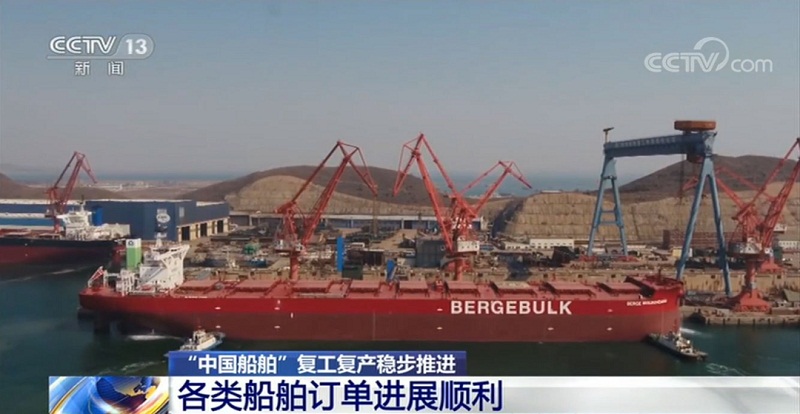 ????眼下全國(guó)在做好疫情防控的同時(shí),復(fù)工復(fù)產(chǎn)的速度不斷加快,我國(guó)經(jīng)濟(jì)也呈現(xiàn)加速回暖態(tài)勢(shì)。我國(guó)是世界第一造船大國(guó),船舶訂單一直穩(wěn)居全球第一,今年以來,中國(guó)船舶工業(yè)的生產(chǎn)和研發(fā)也受到疫情的一定影響。復(fù)工復(fù)產(chǎn)以來,我國(guó)船舶工業(yè)的生產(chǎn)進(jìn)展如何?下面就和記者一起走進(jìn)各大船廠去看看。