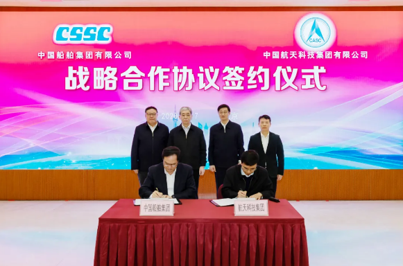 中國(guó)船舶集團(tuán)、航天科技集團(tuán)總部有關(guān)部門(mén)負(fù)責(zé)人參加簽約儀式。
