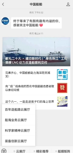 近日,中國船舶集團四大云展廳入駐集團公司微信公眾號。