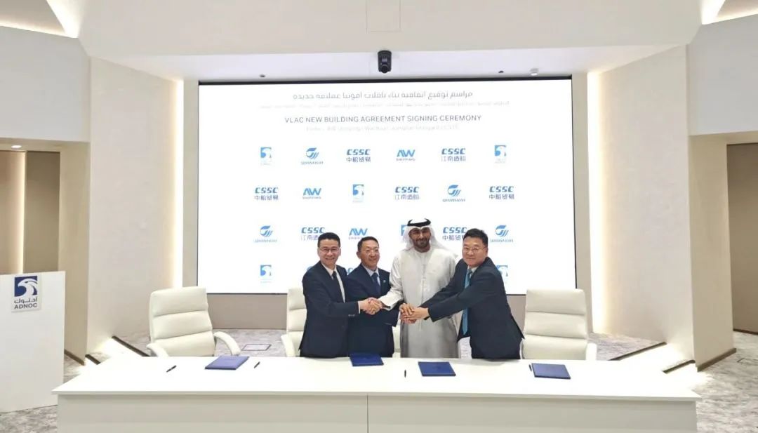 揭牌儀式后,江南造船與阿布扎比國家石油集團物流和服務公司(ADNOC L&S)和萬華化學集團的合資公司AW航運公司續簽了2艘93000立方米超大型液氨運輸船(VLAC) 。