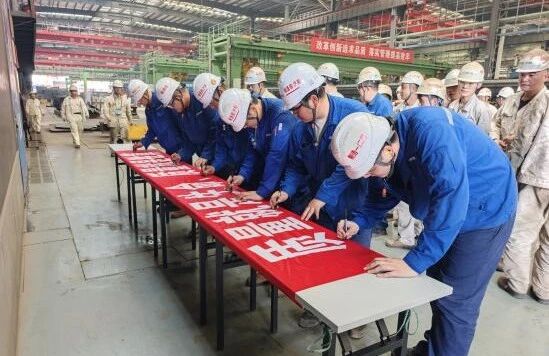 江南造船召開“質量月”活動暨質量改善提案活動啟動會,介紹中船集團“質量月”活動主題和推進工作項,解讀公司“質量月”活動內容;宣貫質量改善行動提案內容,明確后續重點工作任務和時間節點;觀看質量問題警示教育片,并組織人員進行“中船質量,我的責任;江南質量,由我擔當”簽字儀式。