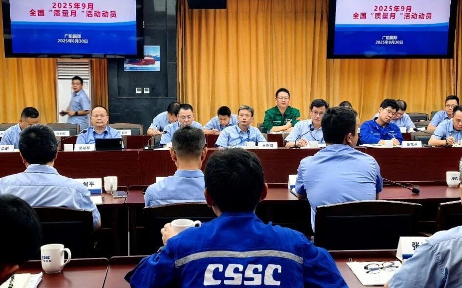 廣船國際召開2025年“質量月”活動動員會,通過宣教結合、查改并舉的方式,從質量意識教育培訓、質量提升專項行動、質量文化建設三個方面,策劃部署了質量門建設實施要求宣貫、“十五五”質量專項規劃研討、“黨建+質量”研討交流等23個活動項目,持續優化質量管理體系建設,深入推進精細化質量管理提升。