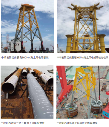 海上基礎類風電產(chǎn)品包括海上風電導管架、輔助樁定位架、穩(wěn)樁平臺、鋼管樁、吸力筒導管架、風電單樁等。
