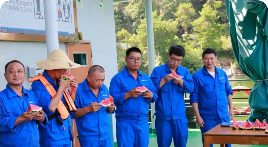 7月杭州的氣溫已經(jīng)逼近40℃,千島湖上更是熱浪灼人。試驗(yàn)平臺(tái)的“燜爐”和“鐵板”上,不少項(xiàng)目組正在追趕進(jìn)度,大家都是汗如雨下。七一五所黨委為奮戰(zhàn)在科研生產(chǎn)一線的員工送去防暑物資,傳遞對(duì)員工的關(guān)懷和鼓勵(lì)。