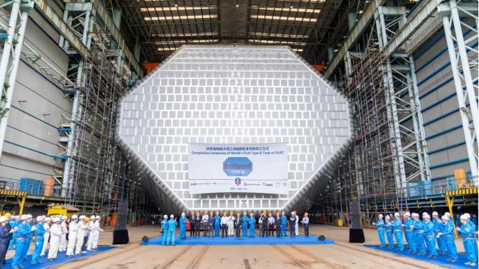 值得一提的是,B型艙液貨圍護系統在100000立方米以下的氣體船中極具優勢,而該船99000立方米的艙容,稱得上是可達到符合被稱之為行業通行標準“美國休斯頓航道主尺度包絡線”限制條件下的最大載貨容積,目前位居這一細分市場的領先地位。同時B型艙技術還可拓展應用到液化天然氣貨艙和燃料艙上,實現國外專利的“可替代”,突破“卡脖子”壟斷。江南造船已經研發完成了80000立方米B型艙LNG船和可配置在大型雙燃料集裝箱船上的6000至18500立方米的LNG燃料艙。此外,VLEC的先進結構設計理念還“反哺”了江南造船的超大型液化石油氣船(VLGC)的換代船型上,江南造船最新研發的93000立方米VLGC獲得了11艘實船訂單,其綜合性能全面領先于韓國現代的同型船。