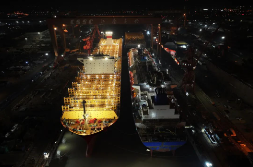 本次出塢的整船是江南造船為新加坡太平船務建造的14000TEU LNG雙燃料集裝箱船系列船第二艘;起浮的一艘整船是17.5萬立方米大型LNG運輸船系列船第二艘,兩艘半船分別是為新加坡太平船務建造的14000TEU LNG雙燃料集裝箱船系列船第三艘的艏、艉半船和第四艘的燃料艙環(huán)段。
