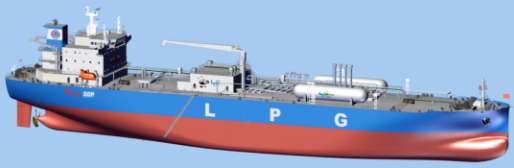 此外,該型MEC將搭載江南造船自主研發(fā)的 “BrilliancE?”B型艙,貨艙容量達到48500立方米,配備3個B型液貨艙。其設(shè)計能夠靈活裝載乙烷、乙烯、液化石油氣、氨等多種液化氣體貨品。